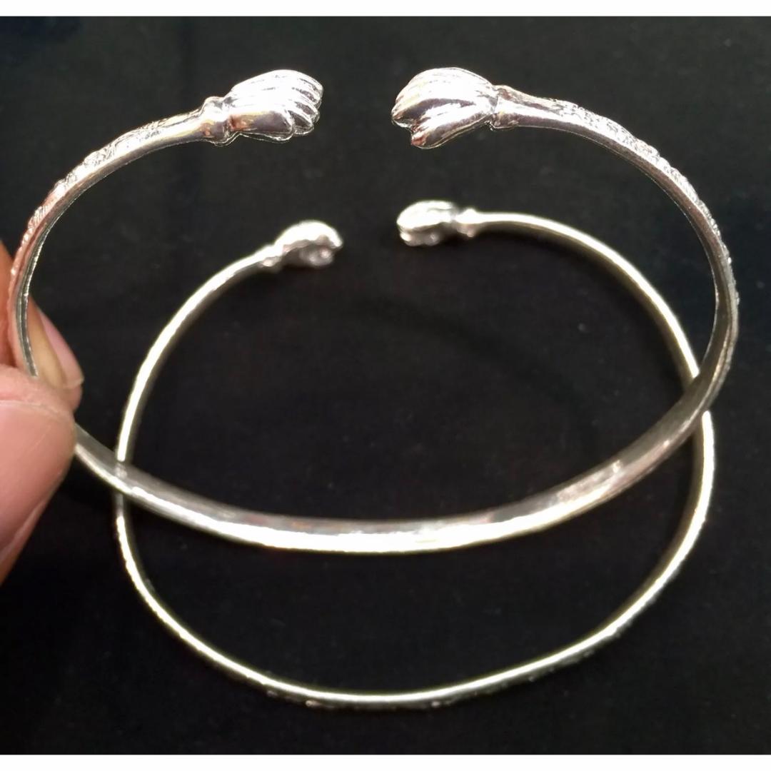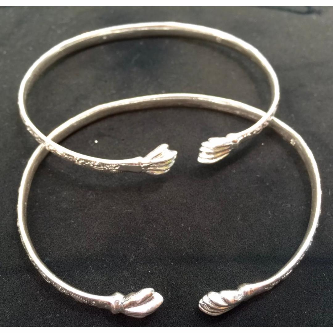 Pair Of Fist Head Handmade West Indian Sterling Silver Bangles Classic Fist Head flat Pair of brand new sterling silver 925 handmade solid bangles with hand crafted designs in front and back