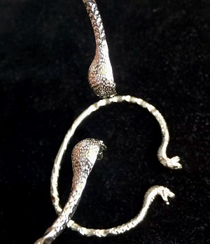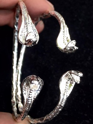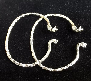 Pair of New Cobra Snake Head Handmade West Indian Sterling Silver Bangles
