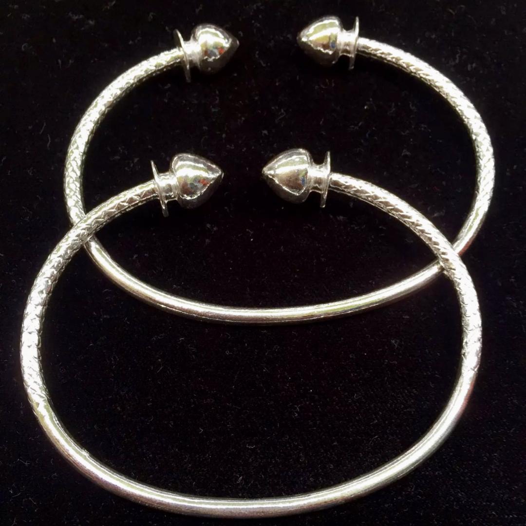 Pair Of Spear Head West Indian Sterling Silver Bangles - Big Size - Men & Women 4 Pair of brand new design high polished plain spear head heavy sterling silver 925 handmade solid bangles with hand crafted designs in front and back