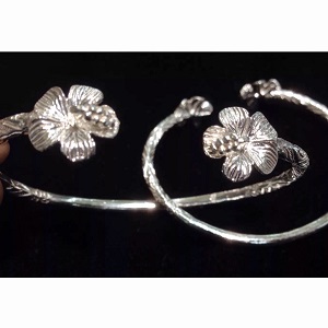 Pair Of Flower Head Handmade West Indian Sterling Silver Bangles Classic Flower Head Pair of brand new sterling silver 925 handmade solid bangles with hand crafted designs in front and back