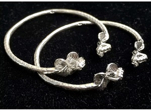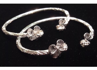 Pair Of Flower Head Handmade West Indian Sterling Silver Bangles - Baby Size Classic Flower Head Baby size Pair of brand new sterling silver 925 handmade solid beautiful bangles with han