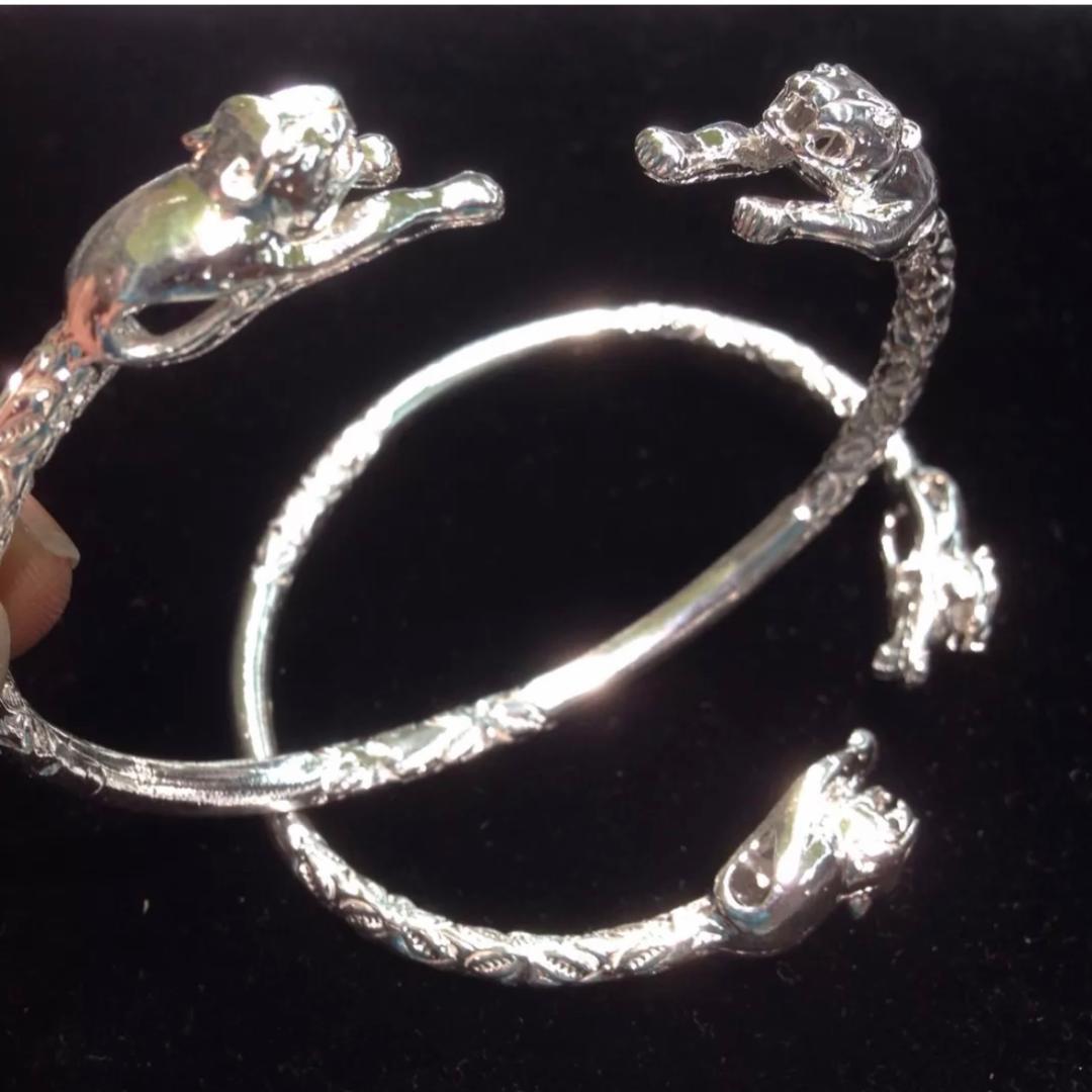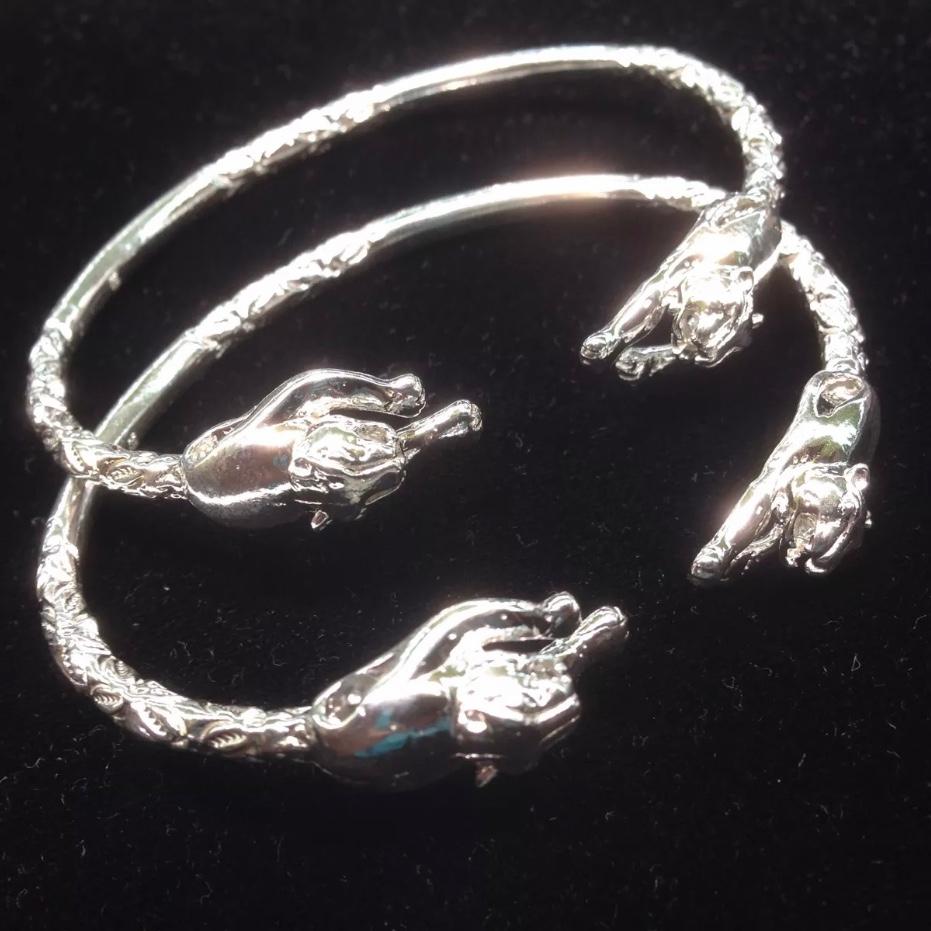 Pair Of New Tiger Head Handmade West Indian Sterling Silver Bangles Classic Tiger Head Pair of brand new sterling silver 925 handmade solid beautiful bangles with hand crafted designs in front and back